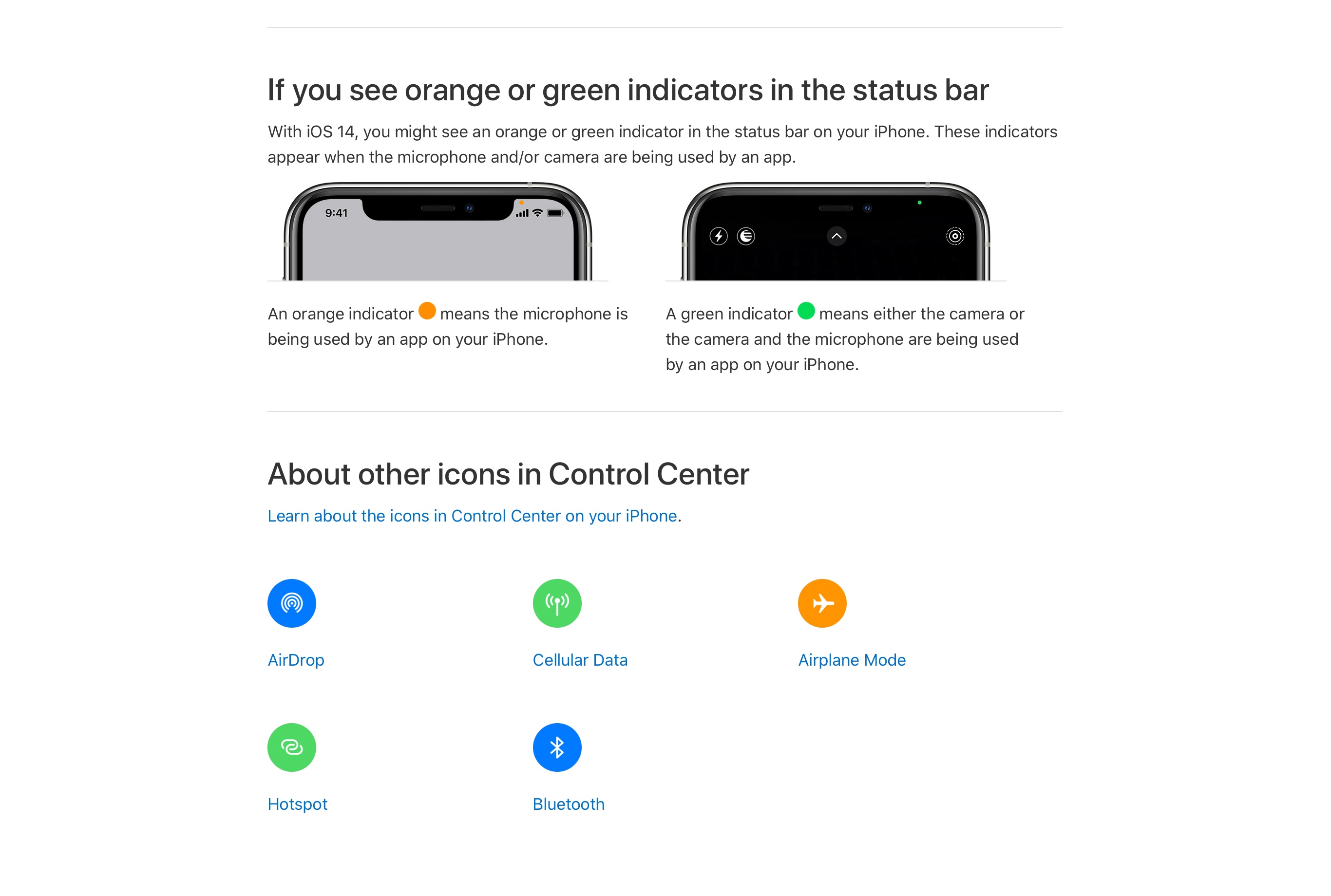These indicators appear when the microphone andor camera are being used by an app. By swiping into your. In iOS 14 an orange dot will appear in the upper right corner of the screen when the microphone or camera is activated.